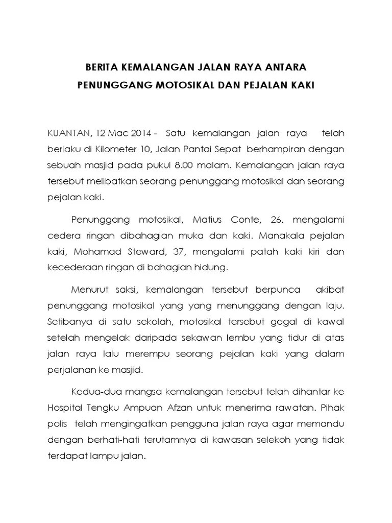 Contoh Karangan Berita Kemalangan Jalan Raya : Rumusan Kemalangan Membalik Buku Halaman 1 2 Anyflip